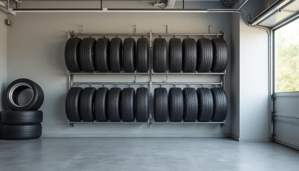 - Reifenwechsel ohne Chaos: Die Räder hängen ordentlich sortiert an der Wand. Sie greifen einfach zu, ohne andere Gegenstände verschieben zu müssen. Das spart Zeit und schont die Nerven.