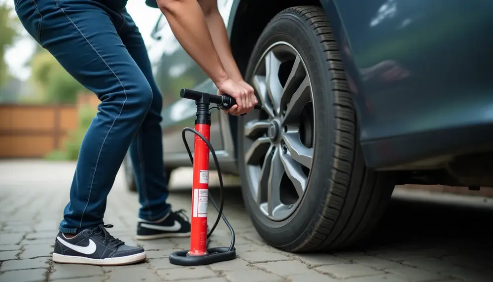 Mit einer passenden Fahrradpumpe lässt sich ein Autoreifen im Notfall aufpumpen, erfordert jedoch viel Zeit und Kraft und ist nur als kurzfristige Lösung geeignet....